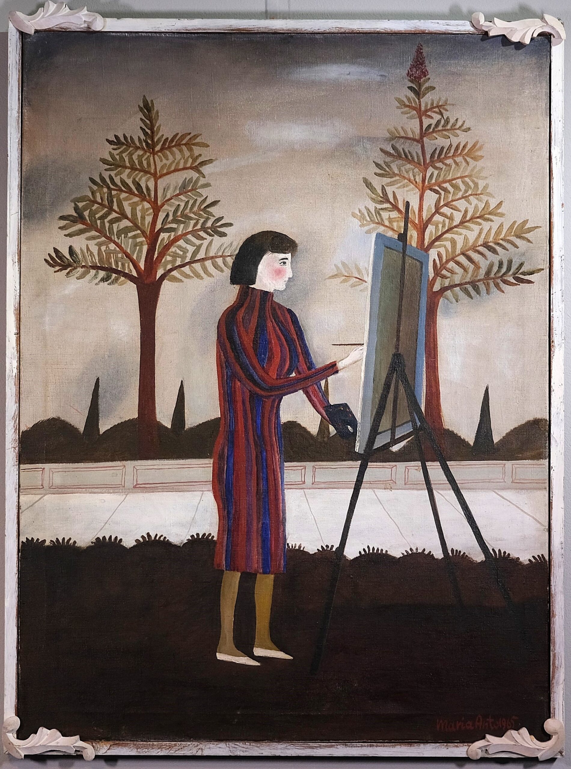 na odwrocie na płótnie sygnatura: Maria Anto 65; pośrodku: 206 na blejtramie napis autorski: „”MAŁY PORTRET DLA HENRYKA””